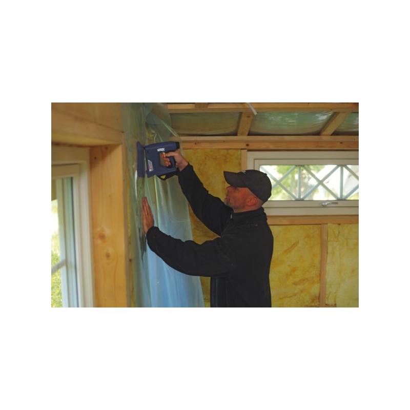 Pour textile, cuir, petite menuiserie, étiquetage, tissu d’ameublement, tapisserie. Utilise des agrafes n°53 de 6 à 14 mm et des pointes n°8 de 15 mm. Livrée dans une mallette avec une batterie déjà chargée pour deux heures et demi d’utilisation.