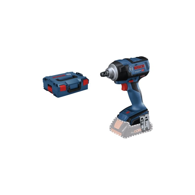Fonctionne sur batterie 18 V. Moteur sans charbon. Réversible droite-gauche, poignée Soft Grip. Emmanchement : carré 1/2'' Couple : 300 Nm Vitesse : 2400 tr/mn Fréquence de frappe : 3400 cps/mn Poids : 1,900 kg Livrée en coffret L-Boxx avec accroche ceinture, sans chargeur ni batterie.