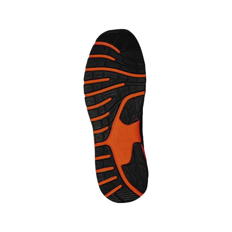 Tige en microfibre et croute de cuir, hydrofuge. Doublure en textile. Première de propreté anatomique et amovible en maille sur mousse PU. Semelle d'usure en caoutchouc / EVA. Semelle antiperforation textile. Embout de sécurité en composite. Poids : 558 g Coloris : noir/orange Pointures : 35 au 48 Norme : CE Cat II - EN ISO 20345 - S3 HRO SRC