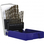 Foret HSS E5 DIN338. Affûtage en croix. Angle de coupe 135°. En coffret plastique.