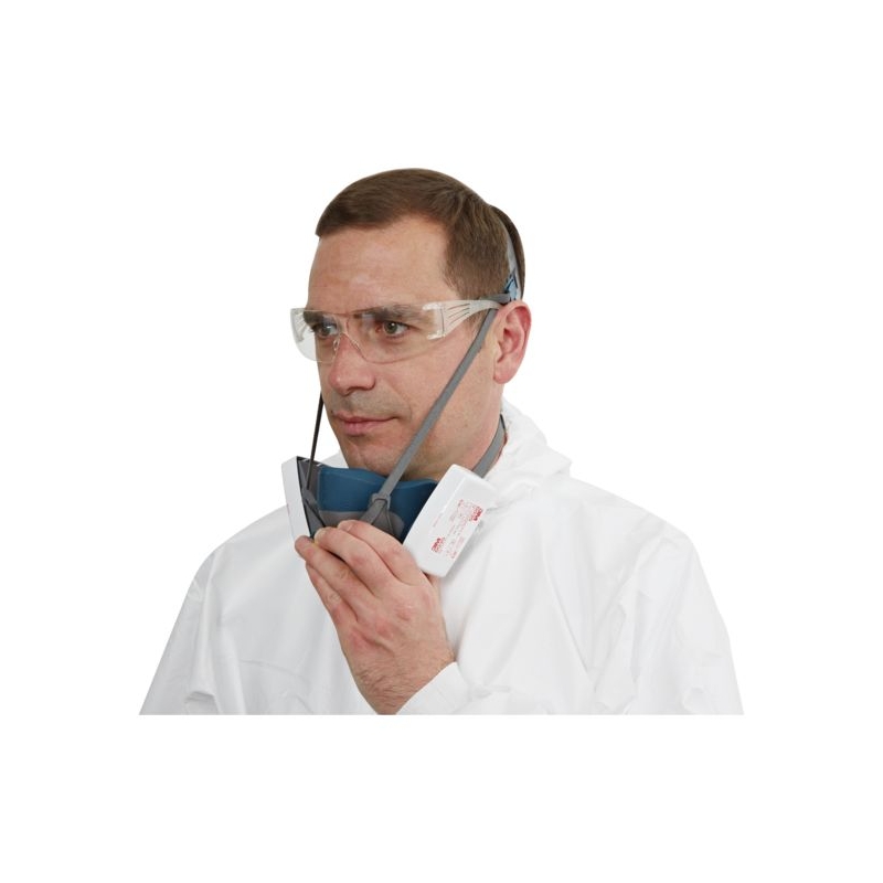 En silicone. Équipé d'une soupape expiratoire centrale. Confortable, léger, entretien facile. À équiper de filtres latéraux fixés par système 'Click' à baïonnette. Harnais ajustable. Mise en place et retrait aisé lors de l'entrée ou de la sortie d'une zone contaminée, grâce au système Quick Latch. Polyvalence d'emploi : filtres antigaz et/ou à particules Taille : M Norme : CE Cat III - EN 140