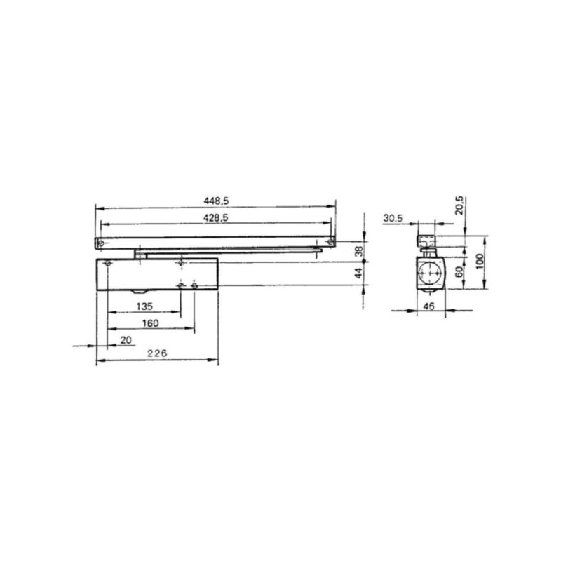 Technologie crémaillère elliptique, bras glissière. Force fixe 3 pour porte intérieure bois. Montage universel côté paumelles et côté opposé aux paumelles. Conforme aux normes NF EN 1154 et NF EN 1634. Homologué CE, CF/PF et PMR. Largeur du vantail : jusqu'à 950 mm Poids du vantail : jusqu'à 100 kg Angle d'ouverture : 105° Conditionnement : boite