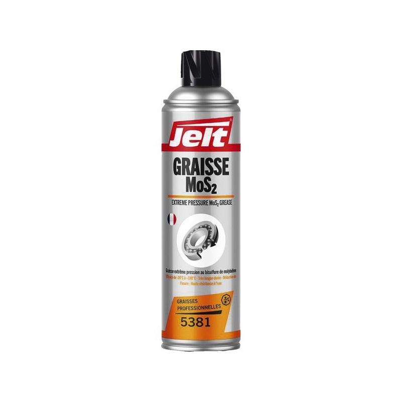 Graisse extrême pression au bisulfure de molybdène. Spécialement conçue pour des conditions difficiles, grâce notamment à ses agents anticorrosion. Lubrification de très longue durée pour roulements, axes et articulations. Utilisable sous de très fortes pressions. Spray double position. Plage de températures de service : -20°C à +150°C maxi Aérosol : 400 ml net