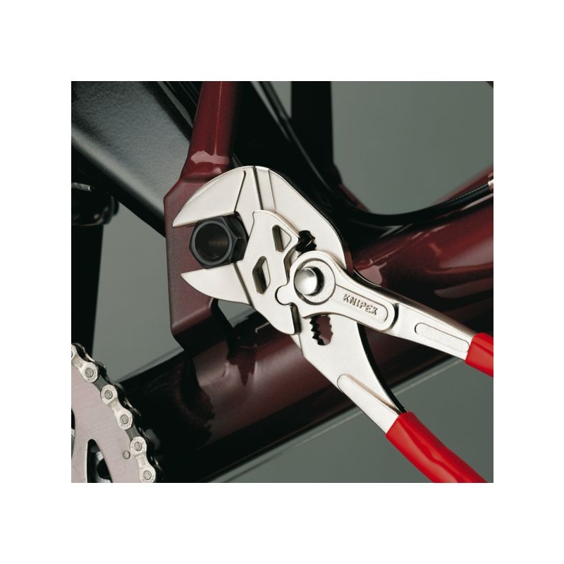 Remplace tout un jeu de clés plates, métriques et en pouce. Mâchoires lisses n’endommageant pas les supports. Réglage par simple pression du bouton. Poignées gainées en PVC.