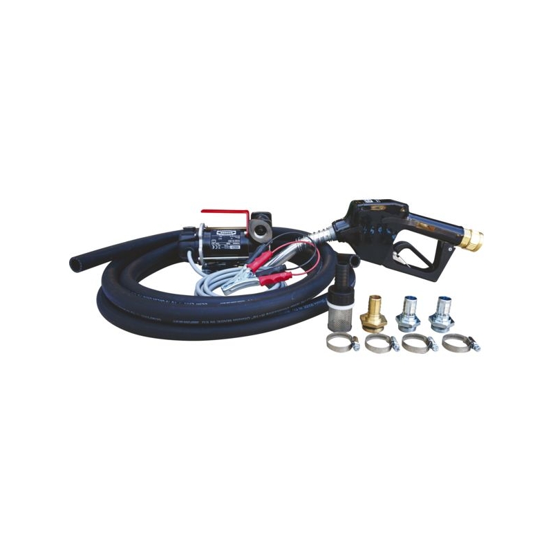 Pompe à palettes auto-amorçante avec by-pass intégré. Pistolet automatique avec raccord tournant. 4 m de câbles électrique avec pinces croco, fusible de protection pour les versions 12 et 24 V. 2 m de câbles électrique avec prise murale pour la version 230 V. 6 m de flexible DN 19 pour l’aspiration et le refoulement. Pression maxi. : 1,3 bar