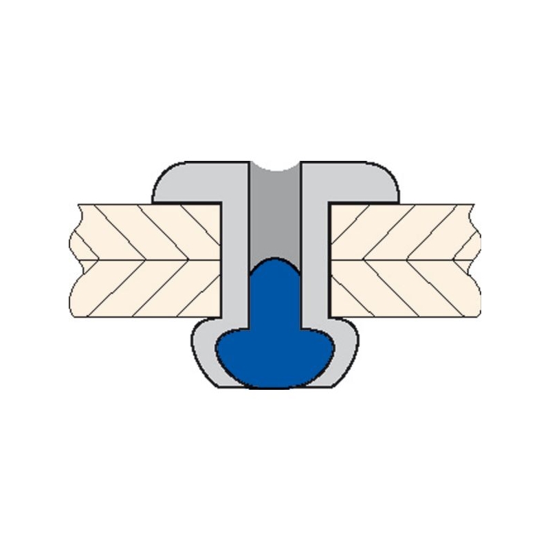 Rivet aveugle standard à tête plate. Corps aluminium et tige acier. Ø perçage : 3,1 pour rivet 3 mm - 3,3 pour rivet 3,2 mm - 4,1 pour 4 mm - 4,9 pour rivet 4,8 mm
