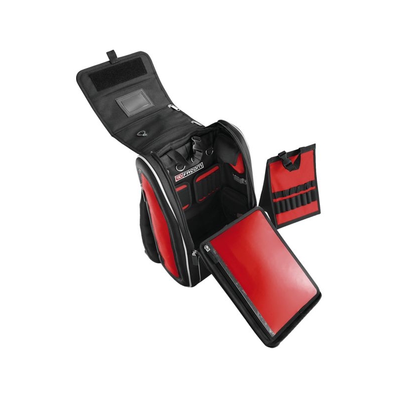 Permet de passer dans des espaces confinés. Compatible avec les échelles à crinoline. Fermetures à glissières cadenassables. Pochettes de rangement amovibles à positionnement libre grâce aux bandes de fixation (Velcro), avec élastique pour les outils. œillets extérieurs ovales pouvant porter jusqu'à 0,5 kg chacun. Bretelles matelassées, ergonomiques, poignée sur le dessus. Bandes réfléchissantes sur l'avant et les côtés. Charge maxi : 10 kg Dimensions : 300 x 180 x 480 mm Livré sans outils.