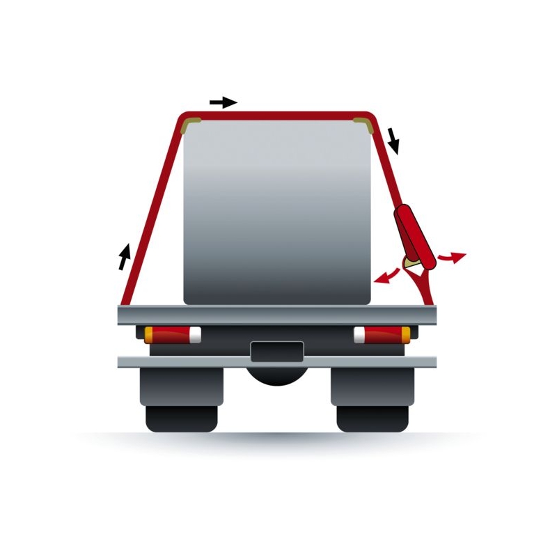Arrimage 2 parties, équipé d'un accumulateur de tension en polyuréthane et d'un tendeur à détente progressive. Ce système breveté permet de rester constamment en tension. Il réduit la perte de tension de sangle liée aux aléas de la route. Deux passants polyuréthane protègent la marchandise et la sangle de l'abrasion. TMU : 2000 kg Longueur/largeur : 9 m/50 mm Norme : EN 12195-2